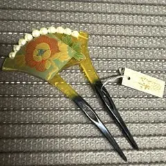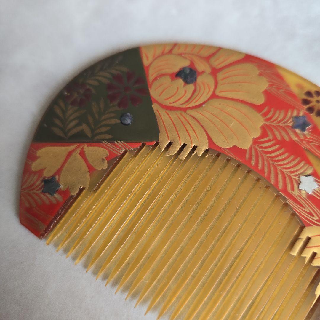 アンティーク 鼈甲カラー 櫛 金蒔絵 い1 工芸品 簪 かんざし 笄 着物