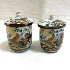 都《ZJHWD》九谷焼 花柄 陶器 湯呑み 2個セット