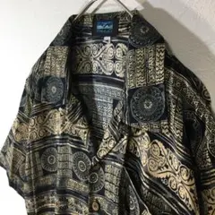 古着 レトロ シャツ 開襟 オープンカラーシャツ 総柄 柄シャツ 半袖