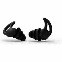 耳にフィットするデザインのブラック耳栓、透明ケース付きで持ち運び便利。
