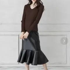 タートルネック、肩開きデザイン、ケーブル編みの長袖ニットセーター。落ち着いたベージュで合わせやすく、女性らしいデザインです。