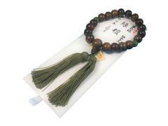 京房ひも職人が作った証しであるシリアルナンバー付きで、さらに、伝統ある「京念珠」だけが付けることを許される京都珠数製造卸協同組合のタグも付いておりす。