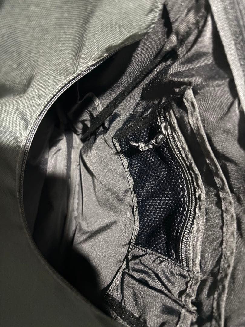 耐水性素材を使用したTHE NORTH FACEのロゴ入りリュック。