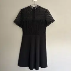 ZARA 【S】フラワープリント Vネック 半袖ワンピース ベルベット風
