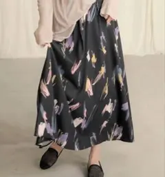 【マーブルクイーン】ロングスカート フレア ドット柄 ブラック系 可愛い L