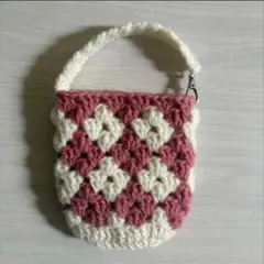ハンドメイド 編み物 かぎ編み ミニ ポーチ キーホルダー フリル リボン