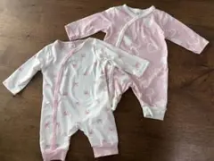 ハート型の編み込みが特徴のグレーのニットロンパース。