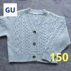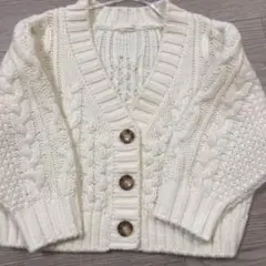 アイボリーのケーブルニットカーディガン、5つのボタン付き、サイズ130。