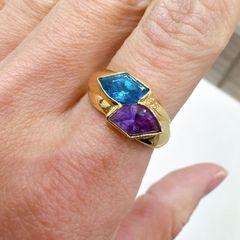ブルートパーズをあしらった花形デザインのアンティーク風リングです。