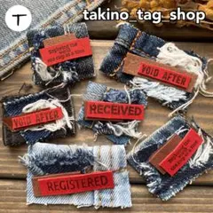 8☆デザインタグ デニムリメイク 革タグ レザータグ 引き揃え糸 ハンドメイド