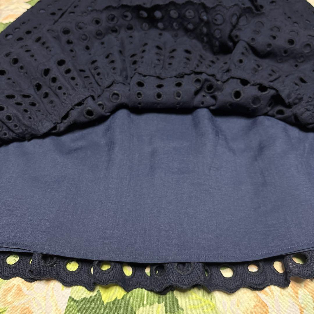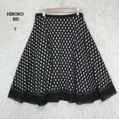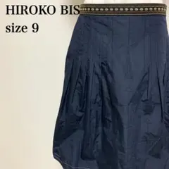 美品【値下げOK】HIROKO BIS 刺繍フレアスカート 7 ネイビー 日本製