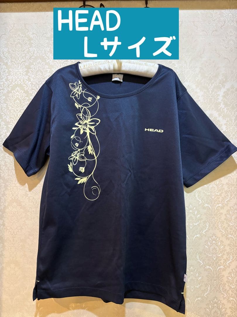 HEAD ネイビー 花柄プリント Tシャツ Lサイズ