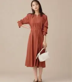 プリーツワンピース オレンジ オータムカラー