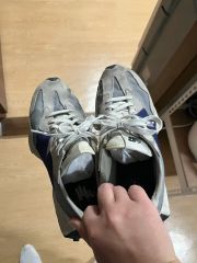 グレーのメッシュアッパーとトレッドソールを備えたM1906RRDモデルのスニーカー。