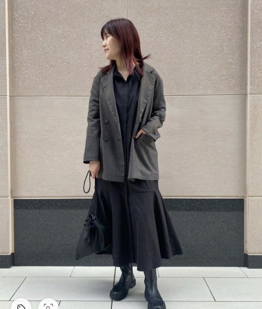 オーバーサイズで、中に厚手のトップスもストレスなく着やすいので長い期間着回しを楽しめます。合わせるだけで、ワンピやスカートも甘すぎず、バランス良いコーデに◎