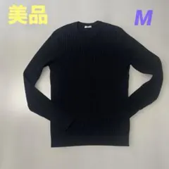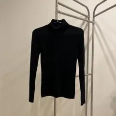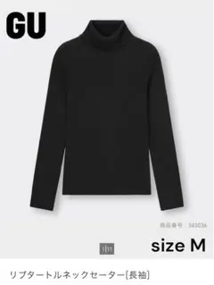 ジーユー 太リブ ハイネック薄手ニット ブラック М