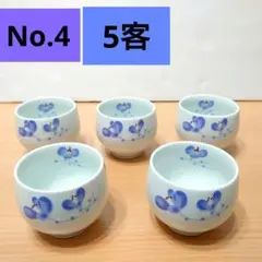 No.2 有田焼 秀峰 湯のみ 湯呑 煎茶碗 白磁 藍染 花柄 5客 昭和レトロ