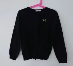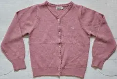ボンボン装飾が特徴の赤いカーディガン、サイズ120。ほぼ着ずにサイズアウトしました。