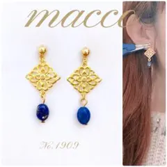 再販 天然石 ラピスラズリ フラワーモチーフ ピアス No.B2