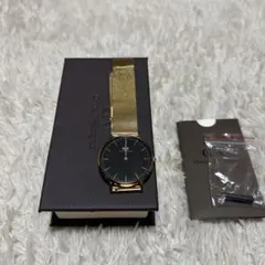 シンプルでエレガントなデザインのブラックダイアル腕時計。
