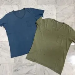 ユニクロ Tシャツ 半袖Tシャツ Vネック グレー L