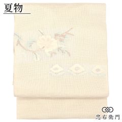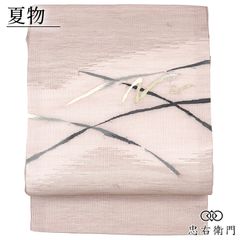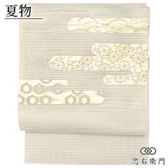MO-3374 夏帯 名古屋帯 本場筑前博多織 紗献上 牙黄色