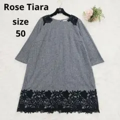 ネイビー ツイード 七分袖ひざ丈ワンピース 46