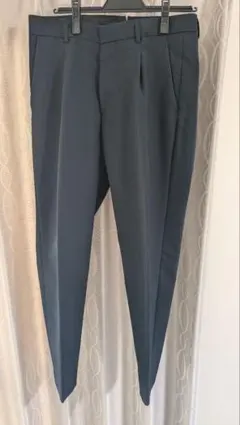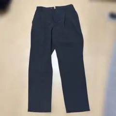 ウエストゴム仕様のネイビーのスラックス、テフロン加工で耐久性あり。