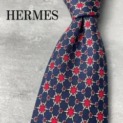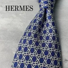 エルメス ネクタイ H柄 ストライプ ドット チェック ネイビー 紺色
