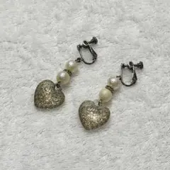 ハート型のパール風イヤリング、カジュアルなスタイルに最適。