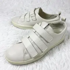 【美品】エコー プラットフォーム スニーカー ベージュ レザー ベルクロ メタル