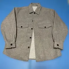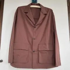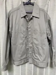 ベージュのGU製ボタン付きシャツジャケット、綿100%で快適な着心地。