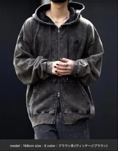 CLEL ヘビーウェイトロゴ刺繍フルジップパーカー ブラウン系