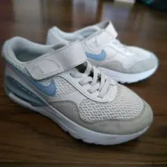 NIKE airMAX、19cmのキッズスニーカー、ホワイトとターコイズの配色が特徴。