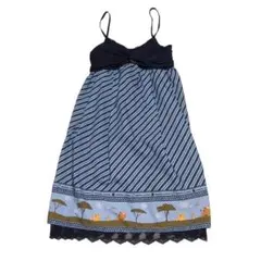 海洋テーマのネイビーワンピース、リボン付きでスタイリッシュ。