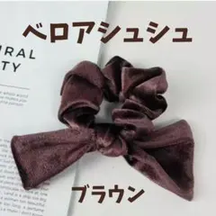 リボン シュシュ ベロア ブラウン ヘアゴム 大人可愛い 上品 髪飾り
