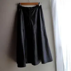 ひざが隠れる上品な丈感少し落ち感のあるフレアラインでデイリーにもオフィスでも使いやすいデザインだと思います。
