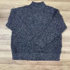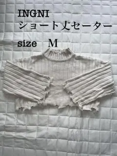 リボン付きのフリルデザインが特徴的なベージュの長袖ニット。