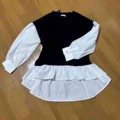 美品 axesfemmアクシーズ 黒 レース付き長袖ブラウスシャツ
