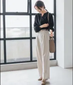センタープレス入りでキレイめにもこなせるので、シャツやブラウスと合わせてオフィスシーンにも。