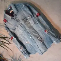 トミーヒルフィガー デニムジャケット Gジャン 刺繍ロゴ ドーナツボタン M