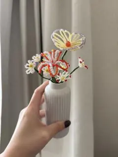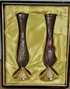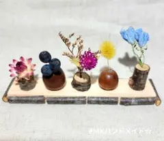 シンプルなフラスク型の一輪挿し、木製スタンド付き。