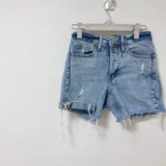 デニムブルーのショートパンツ、98%コットンで快適な着心地。