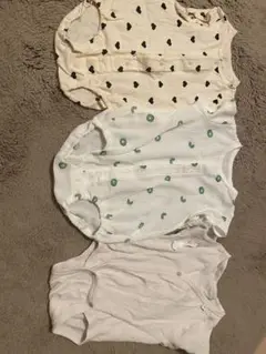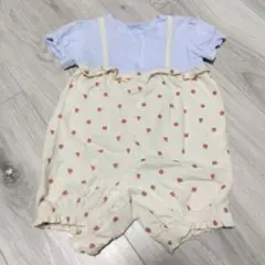 柔らかいポリエステル素材のネイビーとホワイトのロンパース、サイズ60-70cm、赤ちゃんに最適。