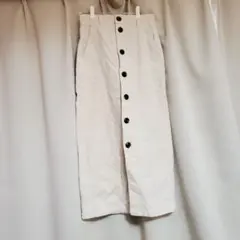 アイボリーの編み込みニットスカート、フレアデザインでエレガントな印象。