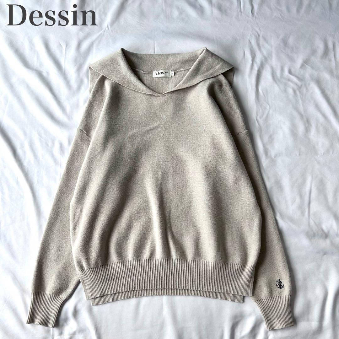 デッサン 美品 セーラーデザイン 袖刺繍 ワイドデザイン 長袖ニット ウール