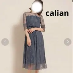 キャリアン パーティードレス ノースリーブワンピース 花柄刺繍 38 ネイビー