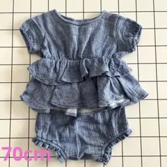 水色花柄刺繍フリルトップスとデニム風レギンスセット 90cm