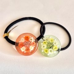 リボン ヘアゴム ハンドメイド レジン ドライフラワー ピンク