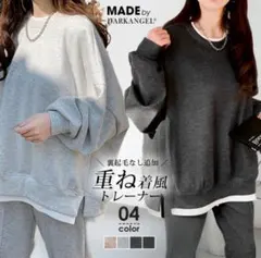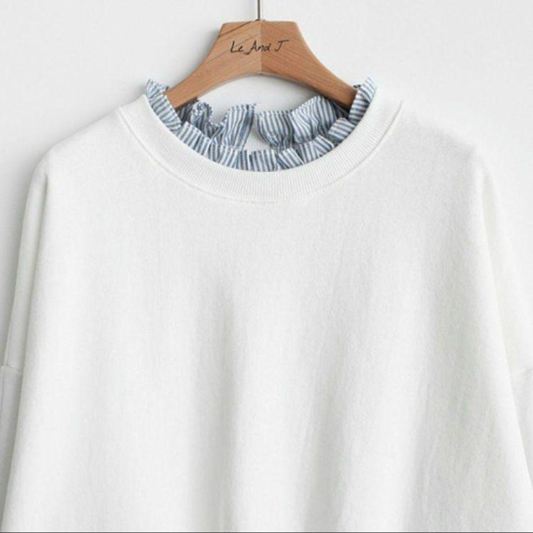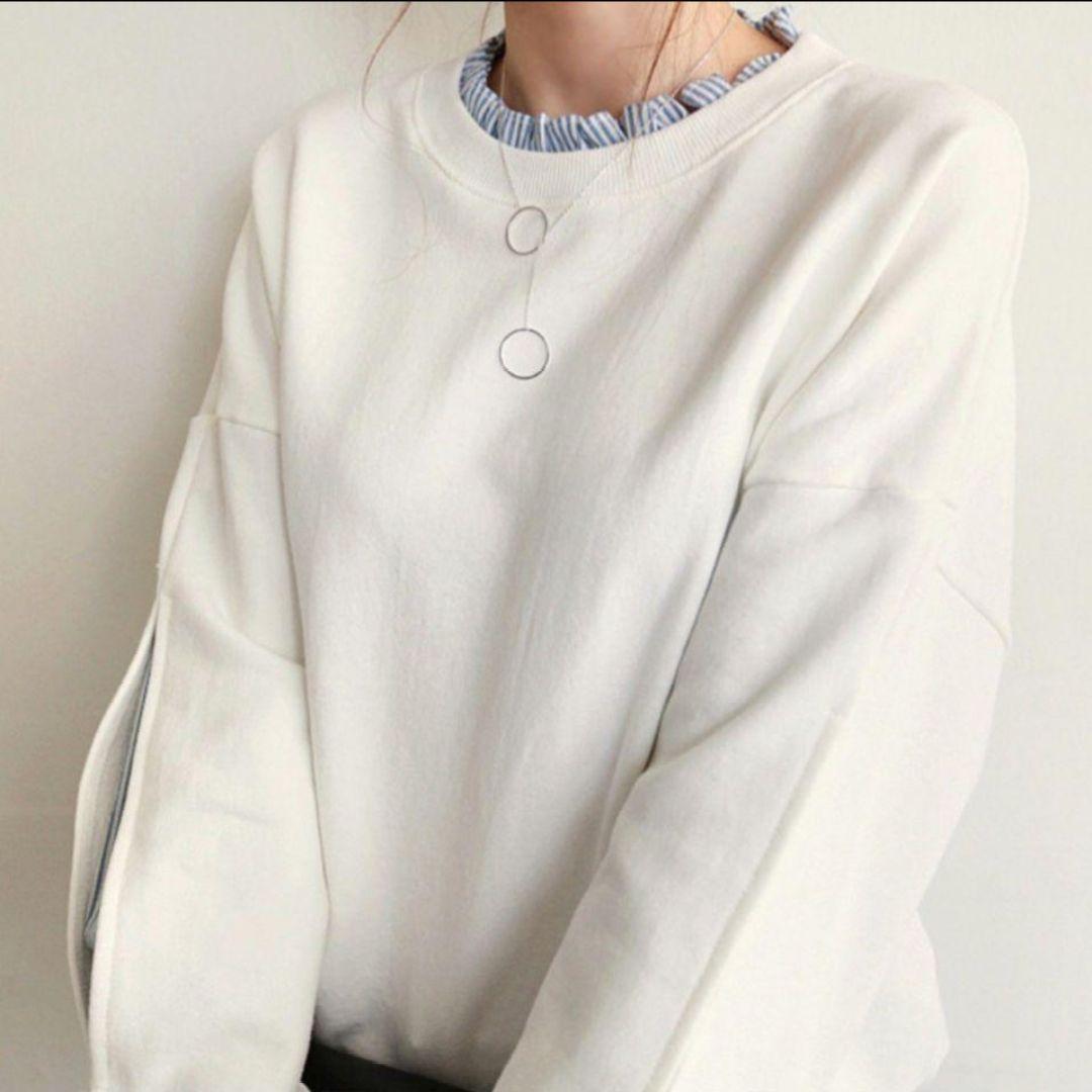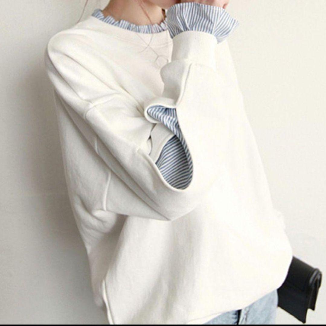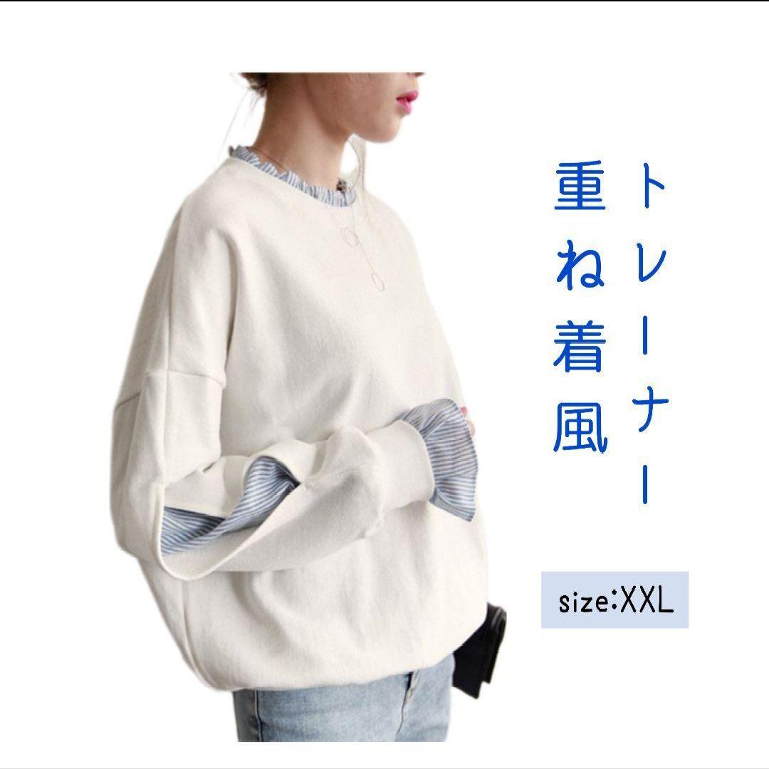 【新品】トレーナー スウェット トップス ホワイト 重ね着風 フリー(XXL)